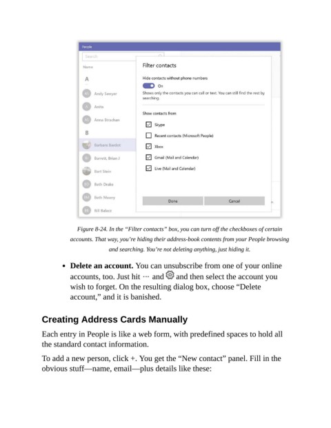 Figure 8-24. In the “Filter contacts” box, you can turn off the checkboxes of certain