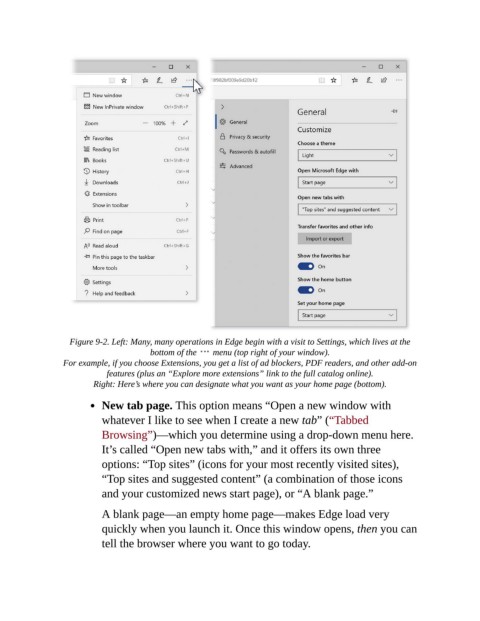Figure 9-2. Left: Many, many operations in Edge begin with a visit to Settings, which lives at the