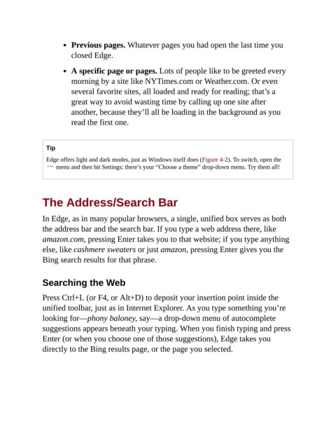 Edge offers light and dark modes, just as Windows itself does (Figure 4-2). To switch, open the