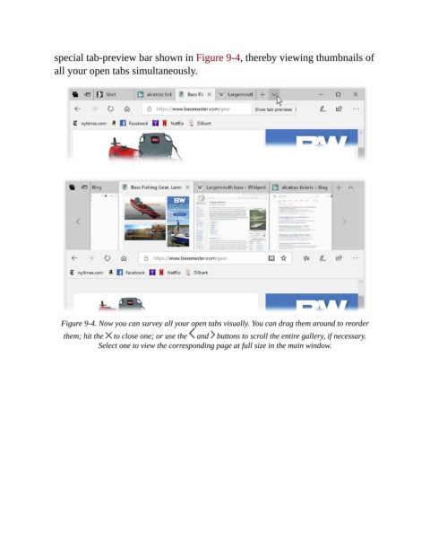 special tab-preview bar shown in Figure 9-4, thereby viewing thumbnails of