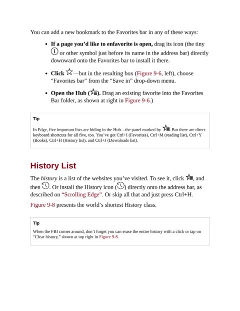 In Edge, five important lists are hiding in the Hub—the panel marked by . But there are direct