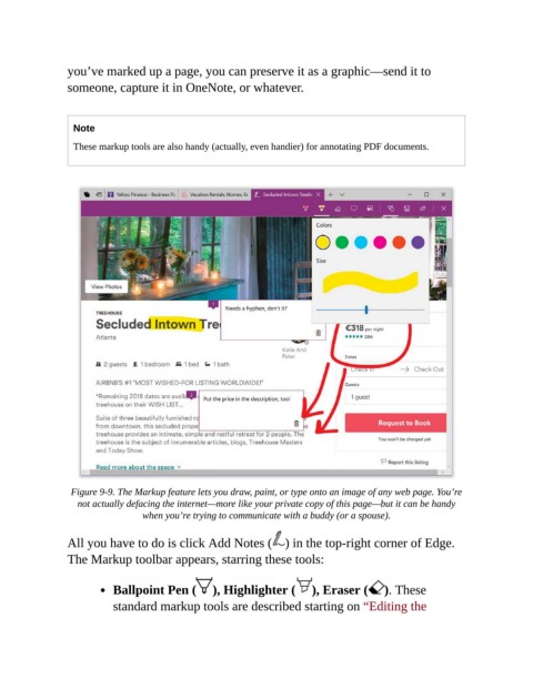 Figure 9-9. The Markup feature lets you draw, paint, or type onto an image of any web page. You’re