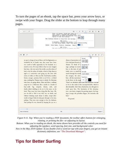 Figure 9-11. Top: When you’re reading a PDF document, the toolbar offers buttons for enlarging,
