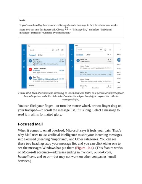 Figure 10-3. Mail offers message threading, in which back-and-forths on a particular subject appear