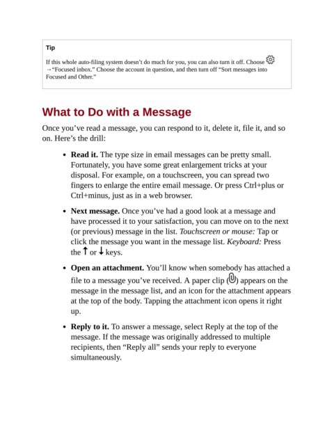 Once you’ve read a message, you can respond to it, delete it, file it, and so