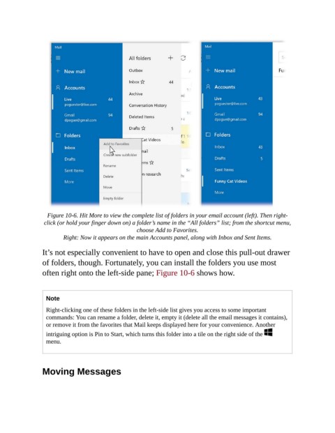 Figure 10-6. Hit More to view the complete list of folders in your email account (left). Then right-