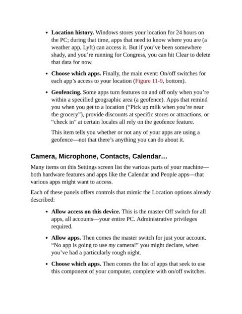 each app’s access to your location (Figure 11-9, bottom).