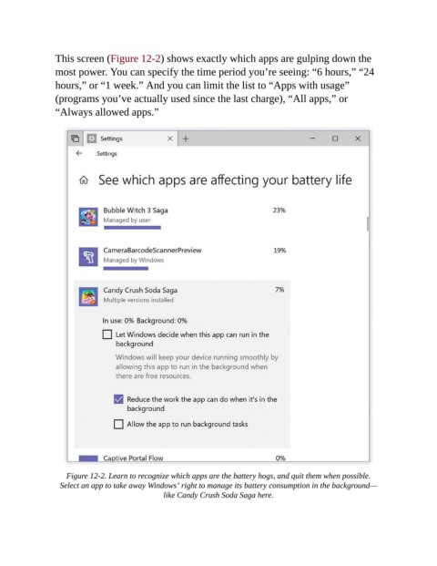 This screen (Figure 12-2) shows exactly which apps are gulping down the