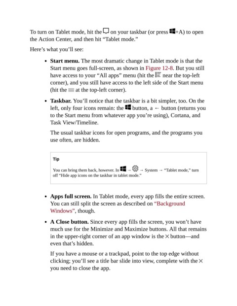 Apps full screen. In Tablet mode, every app fills the entire screen.