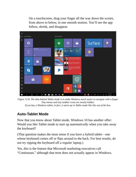 Figure 12-8. The idea behind Tablet mode is to make Windows much easier to navigate with a finger.