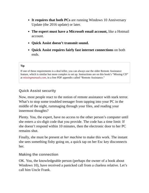 at missingmanuals.com, in a free PDF appendix called “Remote Assistance.”