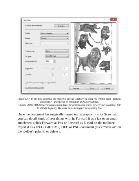 Choose 300 to 600 dots per inch resolution (dpi) for professional scans; for everyday scanning, 150