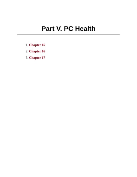Part V. PC Health 1. Chapter 15 2. Chapter 16 3. Chapter 17