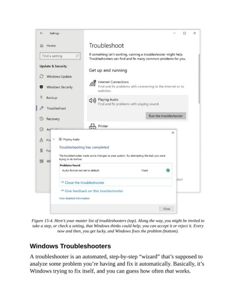 Figure 15-4. Here’s your master list of troubleshooters (top). Along the way, you might be invited to