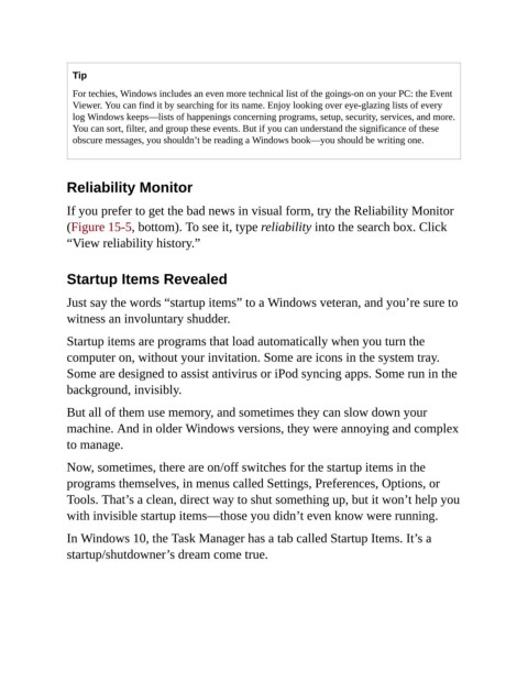 (Figure 15-5, bottom). To see it, type reliability into the search box. Click