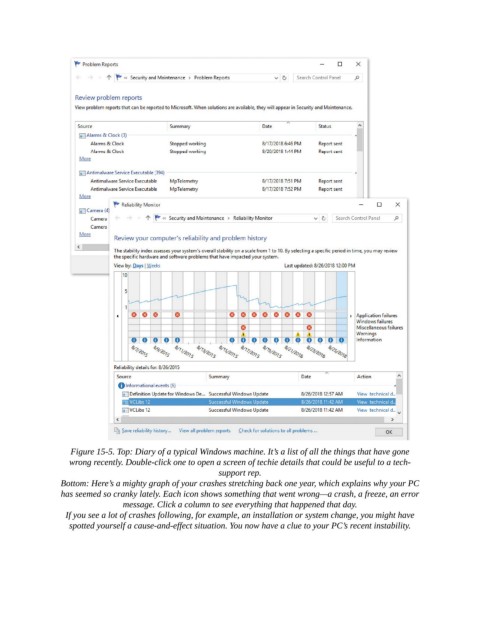 Figure 15-5. Top: Diary of a typical Windows machine. It’s a list of all the things that have gone