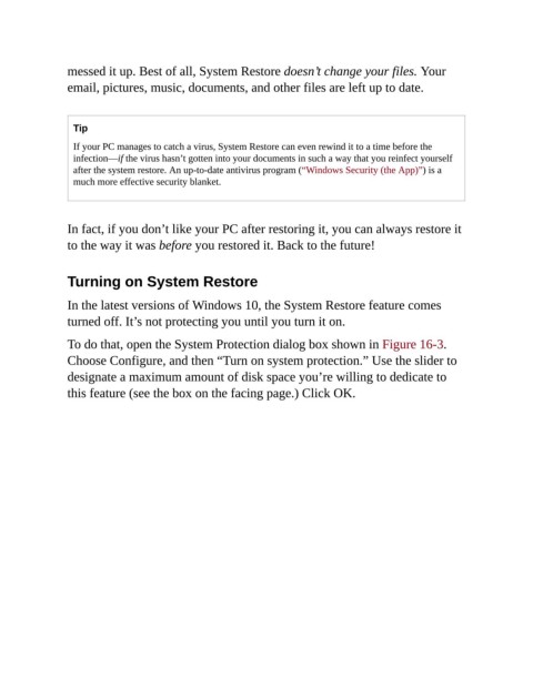 To do that, open the System Protection dialog box shown in Figure 16-3.