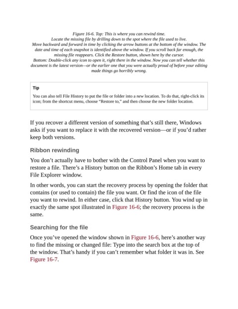 restore a file. There’s a History button on the Ribbon’s Home tab in every