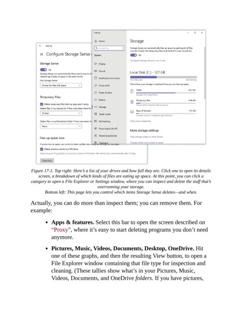 category to open a File Explorer or Settings window, where you can inspect and delete the stuff that’s