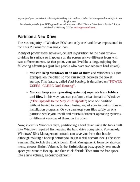 For details, see the free PDF appendix to this chapter called “Turn a Drive into a Folder.” It’s on