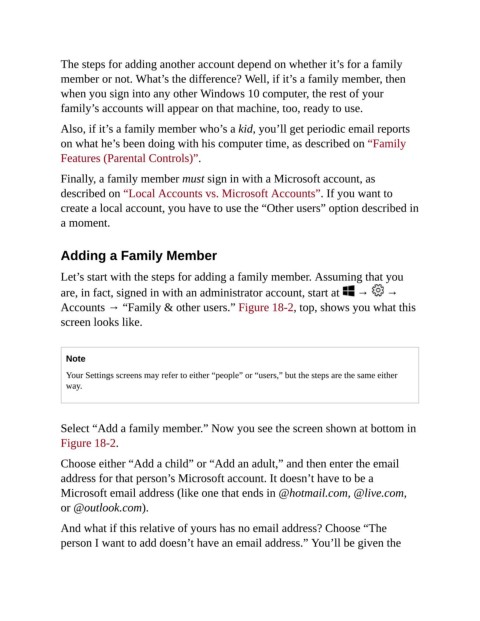 Accounts → “Family & other users.” Figure 18-2, top, shows you what this