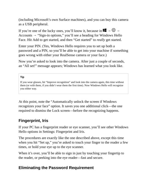 Accounts → “Sign-in options,” you’ll see a heading for Windows Hello