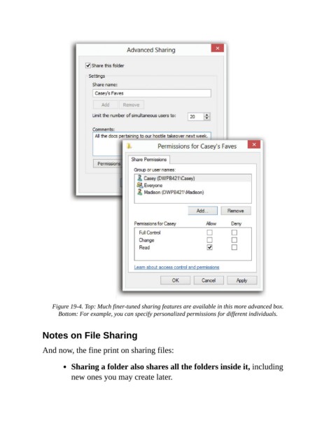 Figure 19-4. Top: Much finer-tuned sharing features are available in this more advanced box.