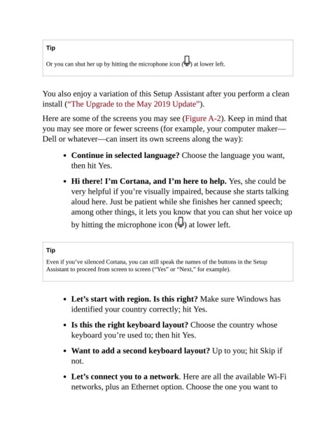 Even if you’ve silenced Cortana, you can still speak the names of the buttons in the Setup