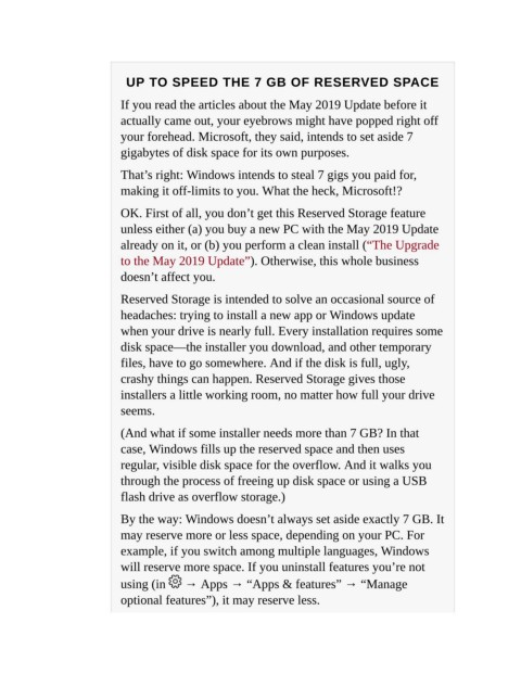 UP TO SPEED THE 7 GB OF RESERVED SPACE