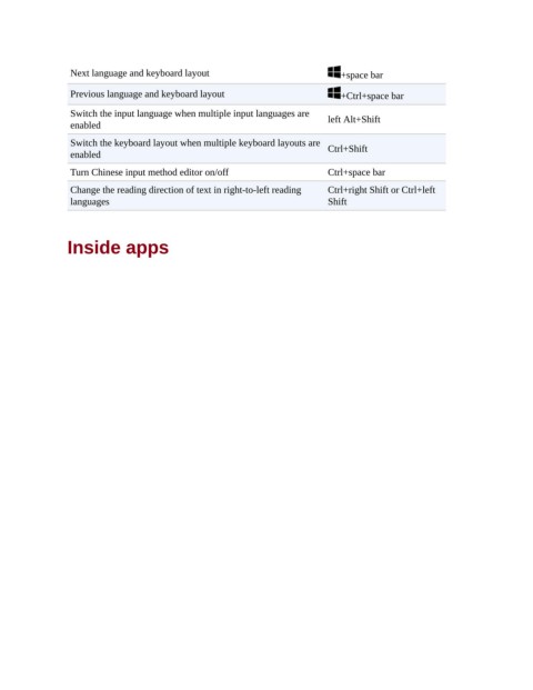 Change the reading direction of text in right-to-left reading Ctrl+right Shift or Ctrl+left