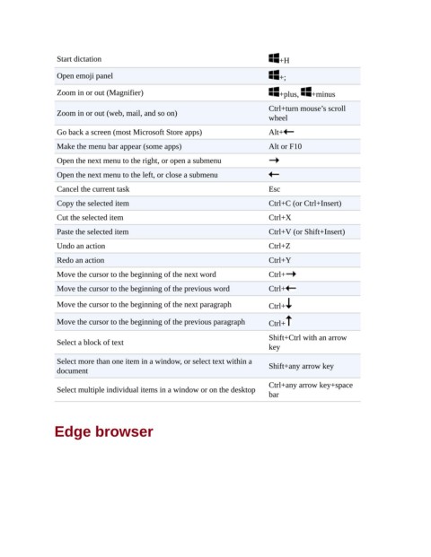 Go back a screen (most Microsoft Store apps) Alt+