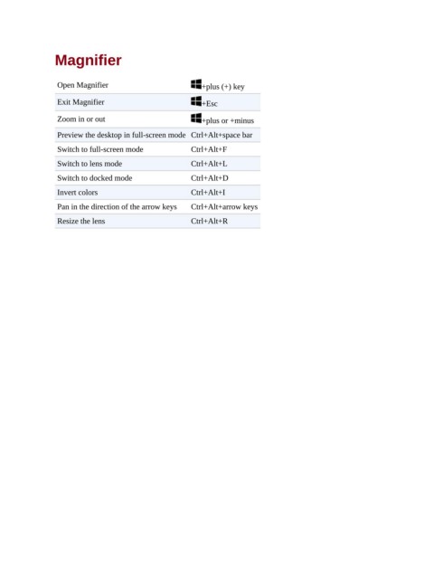 Preview the desktop in full-screen mode Ctrl+Alt+space bar