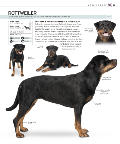 23–27 in (58–69 cm) Rottweiler has acquired an unfortunate image as a vicious
