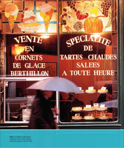 Above A traditional neighborhood restaurant in Paris, France, offering bistro fare, patisserie, and ice creams