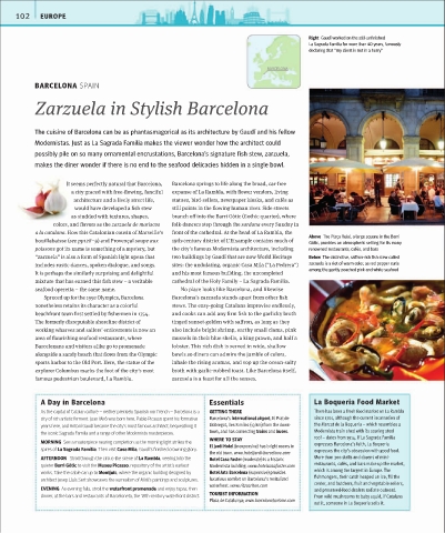 spires of La Sagrada Familia. Then visit Casa Mila, Gaudí’s finished crowning glory. expresses the city’s obsession with good food.