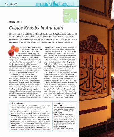 hot mineral bath, then enjoy a juicy Iskender kebab in one of the city’s fine restaurants.