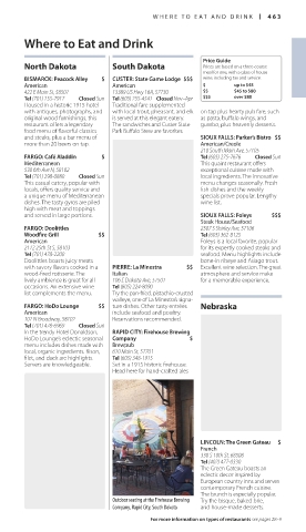 BISMARCK: Peacock Alley $ CUSTER: State Game Lodge $$$ wine, including tax and service.