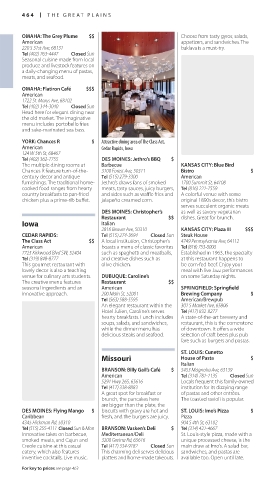 Tel (515) 255-4111 Closed Sun & Mon BRANSON: Vasken’s Deli $ Tel (314) 421-4667