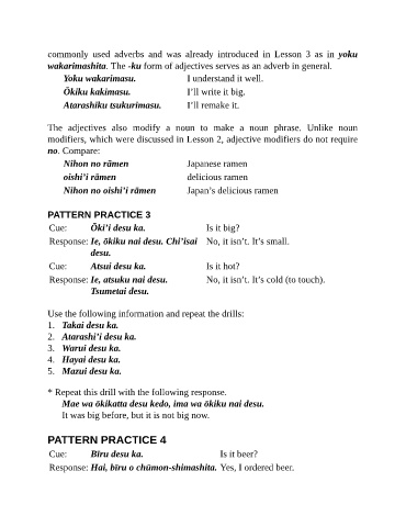 commonly used adverbs and was already introduced in Lesson 3 as in yoku