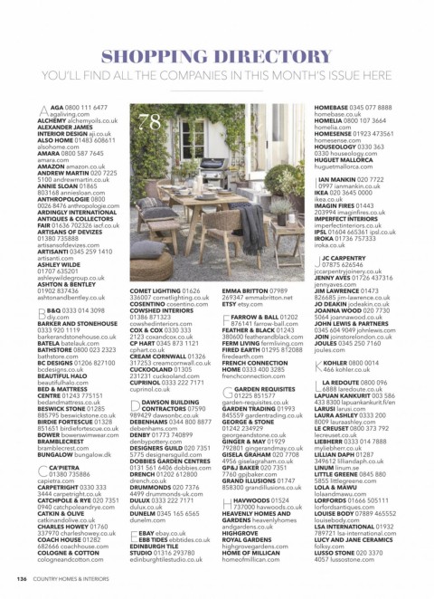 bATELA batelauk.com CP HART 0345 873 1121 fERM LIvING fermliving.com JOULES 0345 250 7160