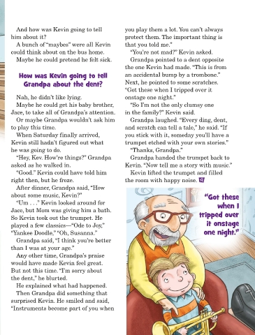 “Hey, Kev. How’re things?” Grandpa Grandpa handed the trumpet back to