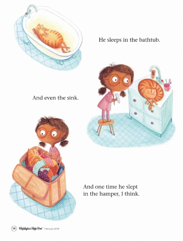 He sleeps in the bathtub. And even the sink. And one time he slept in the hamper, I think. 14 February 2019