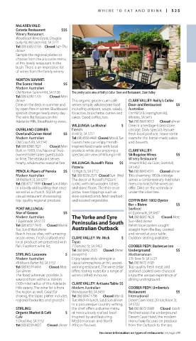 Modern Australian The Yorke and Eyre Tel (08) 8685 4626 Closed Mon;