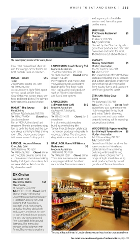 Tel (03) 6224 2554 backdrop for fine food made from nearby farms and succulent