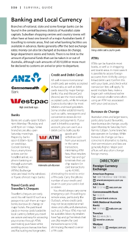 major hotels. Prepaid travel stores and cafés, and alternatives, Tel 13 22 65. ∑ nab.com.au