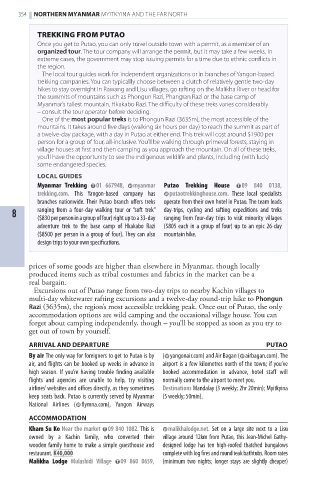 branches nationwide. Their Putao branch offers treks operate from their own hotel in Putao. The team leads
