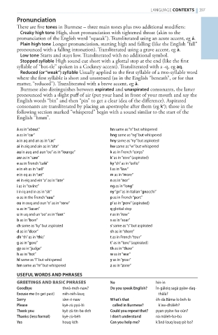 Burmese also distinguishes between aspirated and unaspirated consonants, the latter