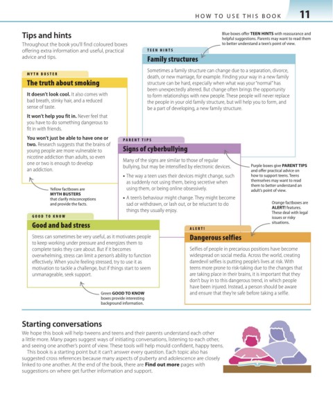 Throughout the book you’ll find coloured boxes to better understand a teen’s point of view.
