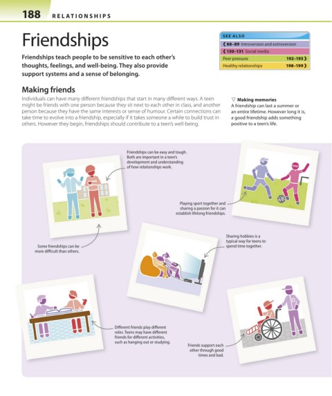 Friendships teach people to be sensitive to each other’s Peer pressure 192–193 ›