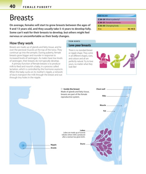 On average, females will start to grow breasts between the ages of ‹ 32–33 Changing body